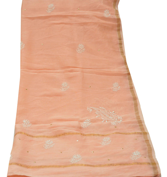 Indian Vintage Peach Dupatta Long Stole Pure Chanderi silk Handmade Mukesh & Chikankari Scarves Veil Scarf Wrap Zari Floral Design