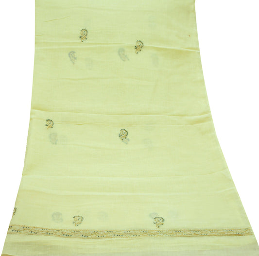 Indian Vintage Yellow Dupatta Long Stole Pure Cotton Handmade Chikankari Scarves Veil Scarf Wrap Hippie Boho Soft