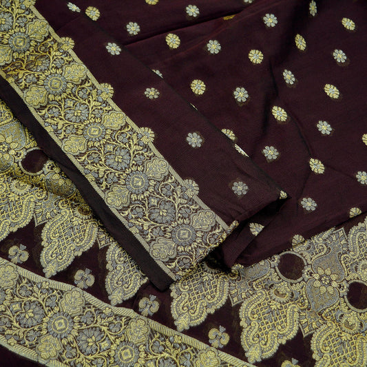 Indian Vintage Coffee Brown Dupatta Long Stole Pure Silk Hand Woven Scarves Veil Scarf Wrap Floral