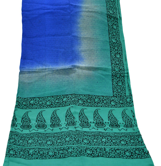 Women Indian Vintage Blue & Green Dupatta Long Stole Pure Crepe silk Printed Dupatta Veil Scarves soft Boho Wrap Dressmaking Paisley