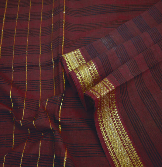 Indian Vintage Maroon Dupatta Long Stole Woven Pure Cotton Indian Scarves Veil Golden Zari Soft Fringes