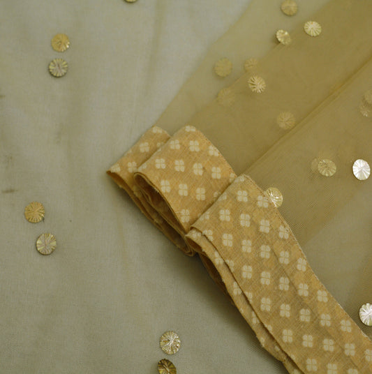 Indian Vintage Beige Dupatta Long Stole Net Mess Hand Embroidered Scarves Veil Hijab Golden Sequins