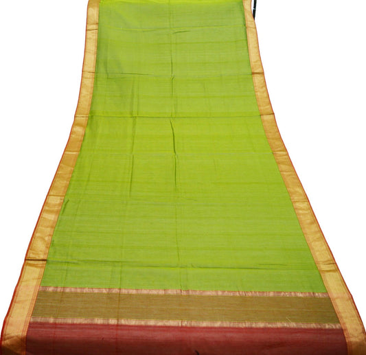 Indian Green Vintage Dupatta Long Stole Printed Woven Pure Chanderi Silk Indian Scarves Veil Golden Zari Soft Fringes