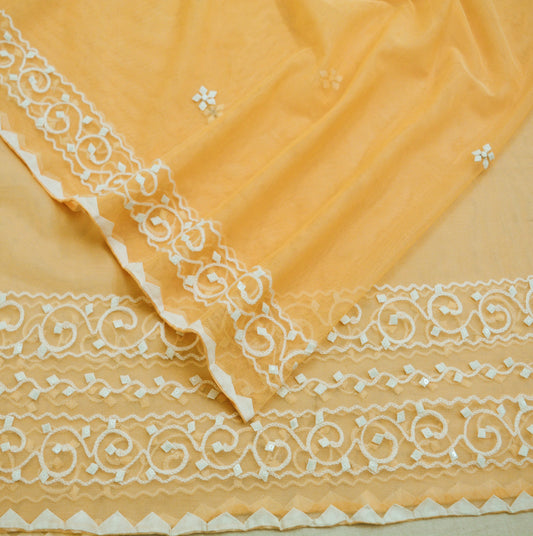 Indian Vintage Peach Dupatta Long Stole Net Mess Hand Embroidered Scarves Veil Hijab Sequins