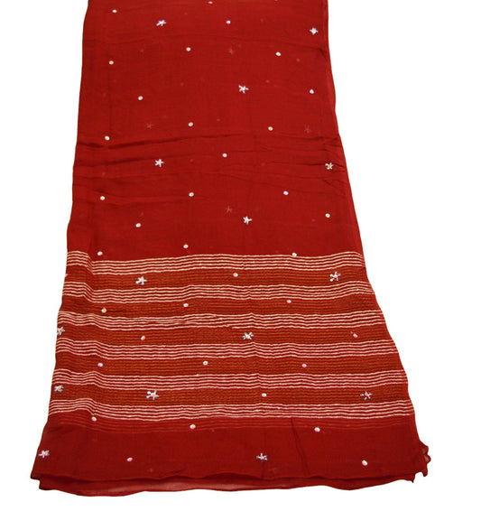 Indian Vintage Red Dupatta Pure silk Long Stole Hand Embroidered Scarves Floral Stole Veil Wrap
