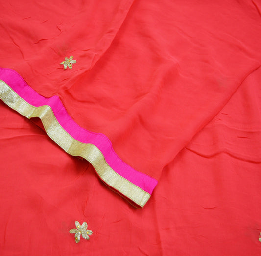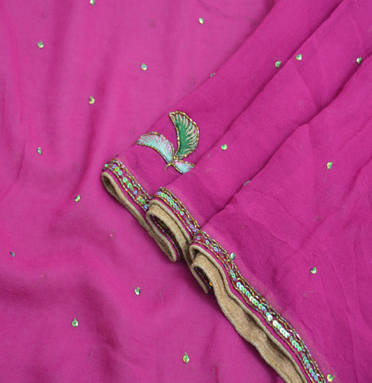 Indian Vintage Pink Dupatta Pure Georgette silk Long Stole Hand Embroidered Scarves Stole Veil Wrap Zari