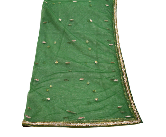 Indian Vintage Green Dupatta Long Stole Net Mess Hand Embroidered Scarves Veil Hijab Sequins
