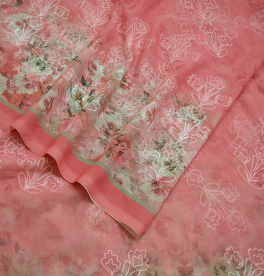 Vintage Pink Dupatta Long Stole Pure Georgette Silk Digital Hand Embroidered Indian Scarves Veil Hijab Floral