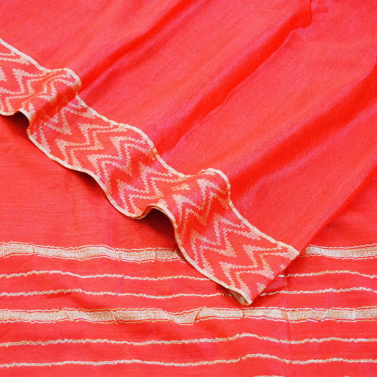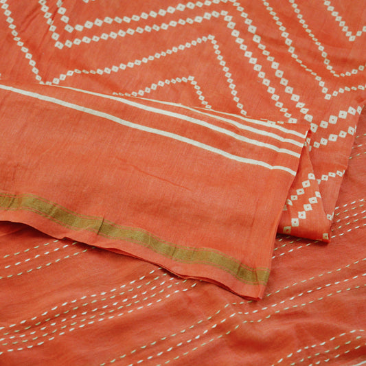 Indian Vintage Orange Dupatta Long Stole Kantha Printed Pure Chanderi Silk Indian Scarves Veil Golden Zari Soft Paisley Design