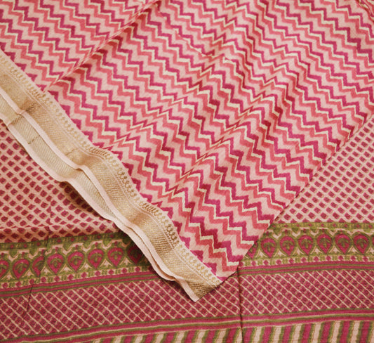 Indian Vintage Peach Dupatta Long Stole Hand Block Print Pure Chanderi Silk Indian Scarves Veil Golden Zari
