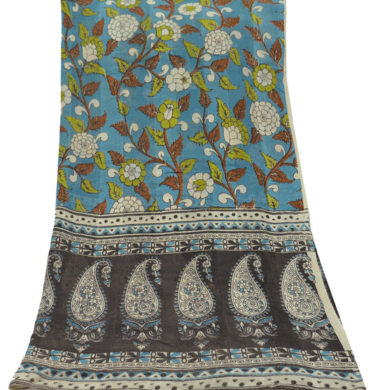 Indian Vintage Brown & Blue Dupatta Long Stole Block Print Pure Cotton Indian Scarves Scarf Veil Wrap Boho Soft Paisley