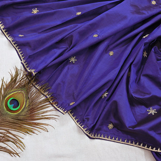 Indian Vintage Dupatta Purple Pure Silk Long Stole Hand Embroidered Scarves Floral Design Stole Veil Wrap Zardozi/ dabka