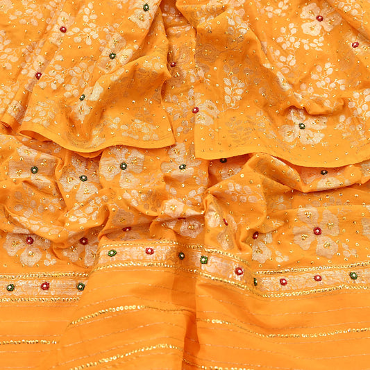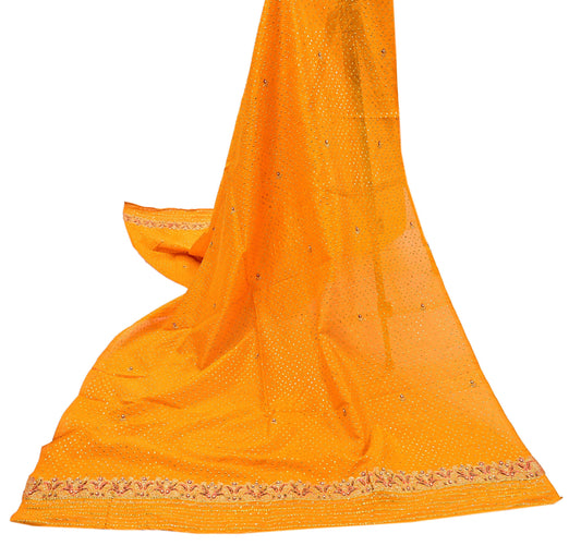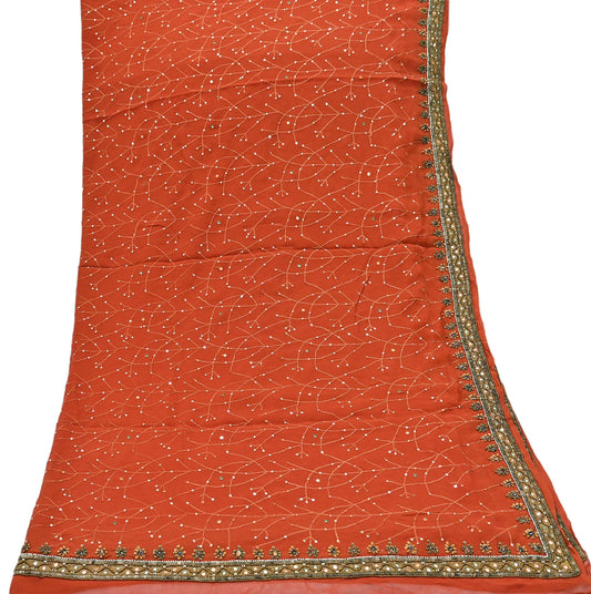 Indian Vintage Orange Dupatta Pure Georgette silk Long Stole Hand Embroidered Scarves Stole Veil Wrap Sequins
