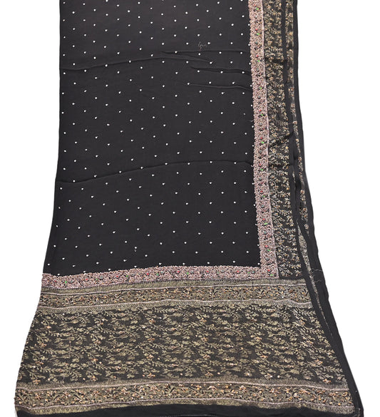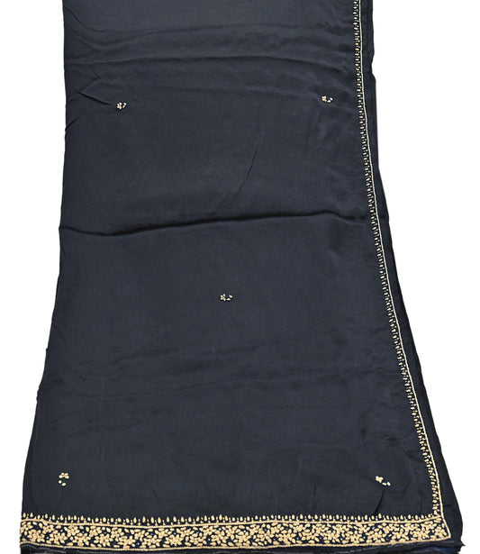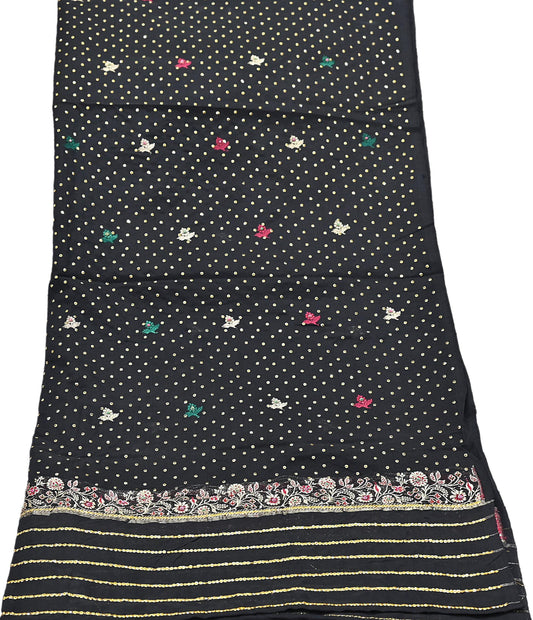 Indian Vintage Black Dupatta Pure Satin silk Long Stole Hand Embroidered Scarves Floral Veil Wrap Zari Zardozi