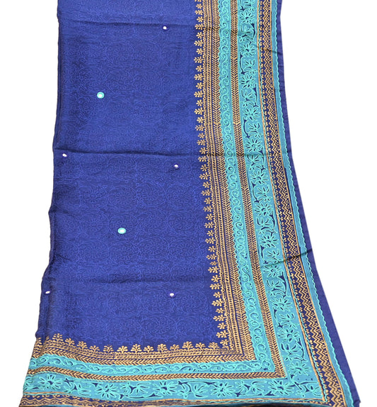 Indian Vintage Blue Dupatta Long Stole Pure Silk Hand Embroidered Scarves Veil Scarf Wrap Hippie Boho Zardozi/ Dabka