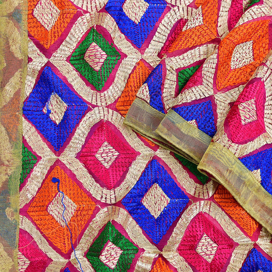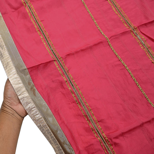 Indian Vintage Pink Dupatta Long Stole Pure Chiffon Silk Embroidered Bagh Phulkari Stole Scarves Golden Lace