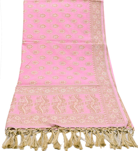 Indian Vintage Pink Dupatta Long Stole Woven Cotton Scarves Veil Soft Floral Design Wrap Boho Upcycle For Designing