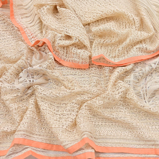 Indian Vintage ivory Dupatta Organza Long Stole woven Scarves Veil Soft Floral Design Wrap Boho Party wear