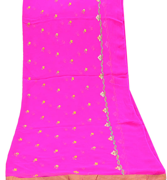 Indian Vintage Pink Dupatta Pure Georgette silk Long Stole Hand Embroidered Scarves Stole Veil Wrap Sequins Dabka/ Zardozi