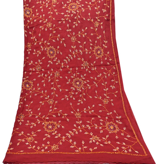 Indian Vintage Red Dupatta Pure Georgette silk Long Stole Hand Embroidered Scarves Stole Veil Wrap Sequins Hijab