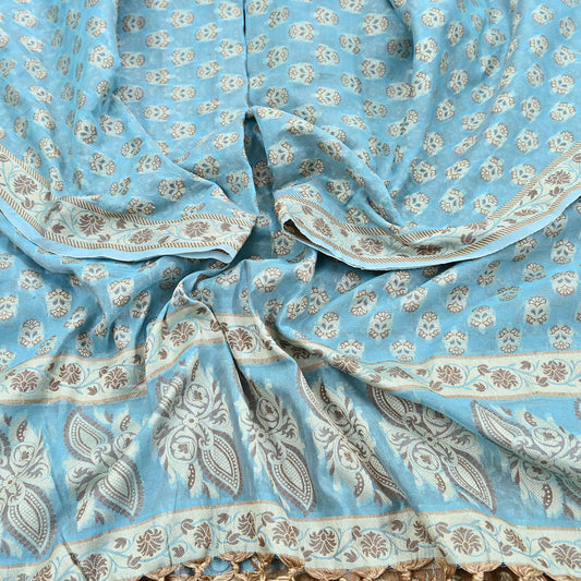 Indian Vintage Blue Dupatta Long Stole Woven Cotton Scarves Veil Soft Floral Design Wrap Boho Upcycle For Designing