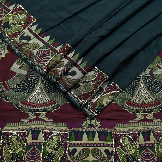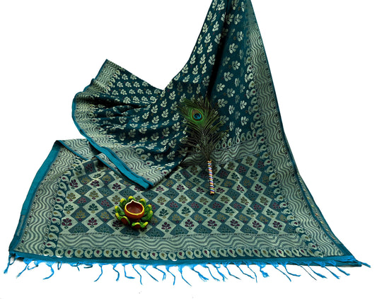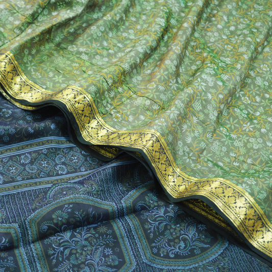 Indian Vintage Sari Green & Blue 100% Pure Silk Printed Sarees Woven Sari 5yd Sewing Craft Fabric Dress Making Soft Zari Border