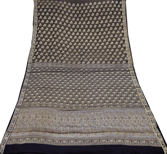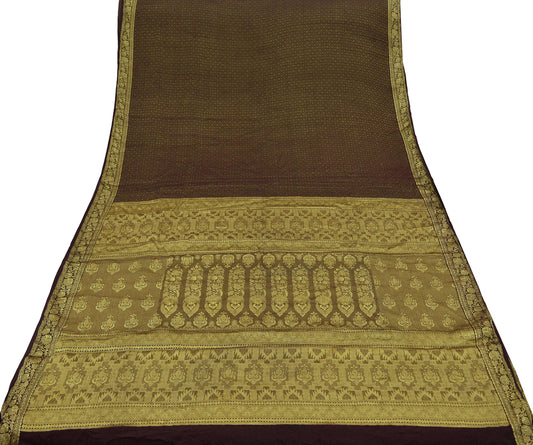 Antique Vintage Coffee Brown Saree Pure Georgette Silk Hand Woven Sari Craft Fabric 5Yd Sewing Soft Ethnic Zari Dress Making Wedding Sari
