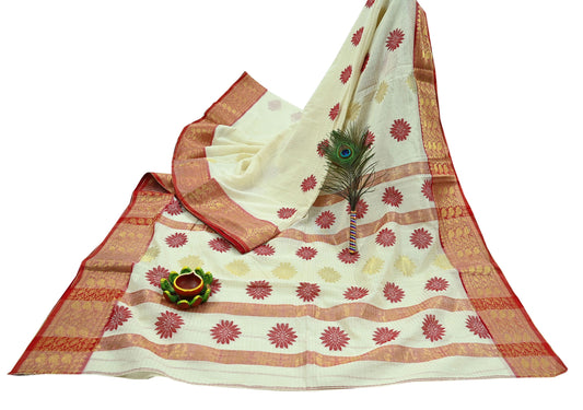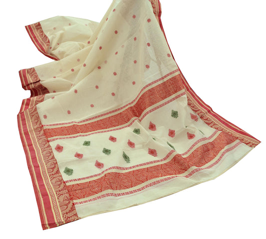 Indian Vintage Sarees Ivory Pure Cotton Hand Woven Sari 5yd Ethnic Floral Craft Fabric Dress making Upcycle Crafting Quilting