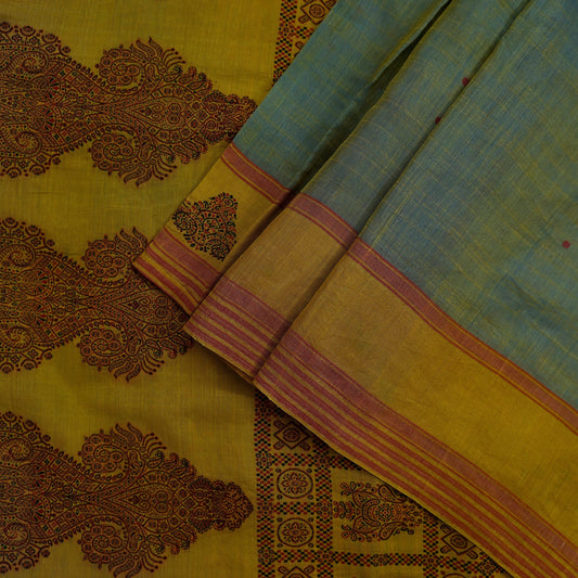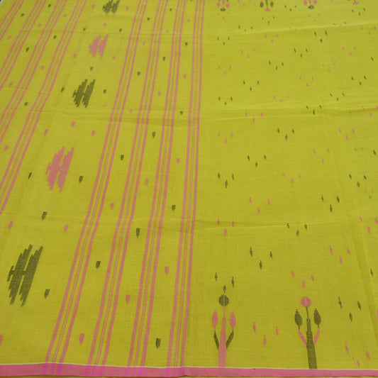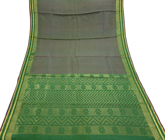 Indian Vintage Sarees Green Pure Cotton Hand Woven Sari 5yd Ethnic Floral Craft Fabric Dress making Upcycle Crafting Quilting