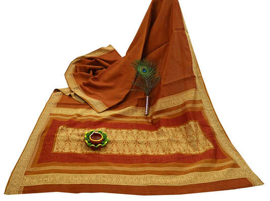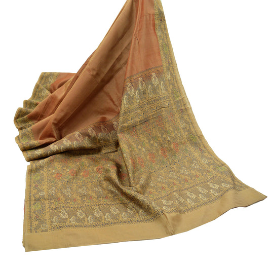 Indian Vintage Sarees Rusty & Beige 100% Pure Silk Hand Woven Sari Craft Fabric 5Yd Ethnic Floral Zari Dress making Crafting Upcycle