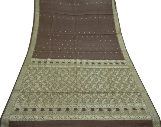Indian Vintage Saree Brown 100% Pure Silk Hand Woven Sari Craft Fabric 5Yd Ethnic Floral Dress making Crafting Upcycle Quilting Bollywood