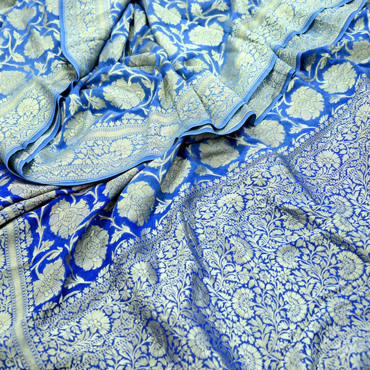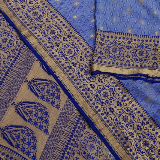 Indian Vintage Heavy Blue Saree Pure Silk Hand Woven Sari Craft Fabric 5Yd Sewing Soft Ethnic Zari Dress Making Wedding Sari