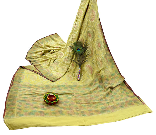 Vintage Heavy Yellow Sarees Pure Georgette Silk Hand Woven Sari Craft Fabric 5Yd Sewing Soft Ethnic Zari Dress Making Wedding Sari