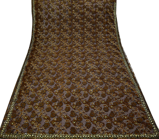 Indian Vintage Heavy Coffee Brown Saree Net/Mesh Hand Beaded Sari Fabric 5Yd Sewing Soft Ethnic Zari Wedding Bollywood Sarees