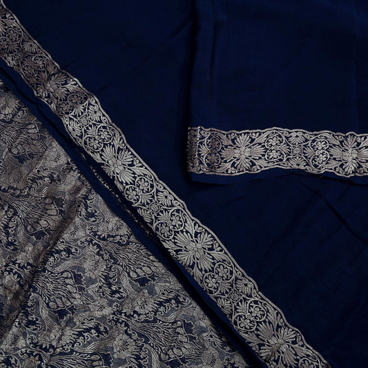 Indian Vintage Heavy Blue Saree Pure Georgette Silk Hand Woven Sari Craft Fabric 5Yd Sewing Soft Ethnic Zari Dress Making Wedding Sari