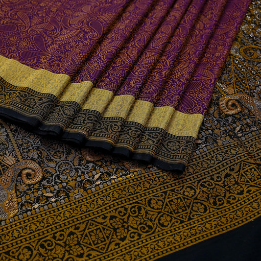 Indian Vintage Heavy Black & Purple Saree Pure Silk Hand Woven Sari Craft Fabric 5Yd Sewing Soft Ethnic Dress Making Wedding Sari Zari