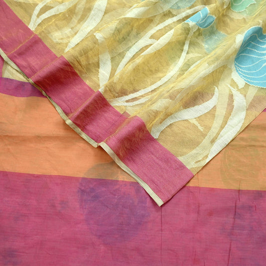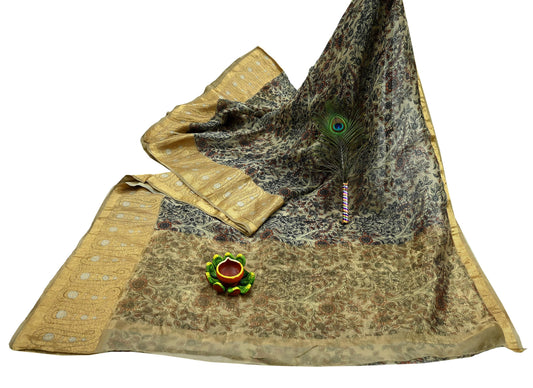 Indian Vintage Sarees Beige Pure Organza Silk Hand Woven Sari 5yd Ethnic Floral Craft Fabric Dress making Upcycle Crafting Quilting Zari