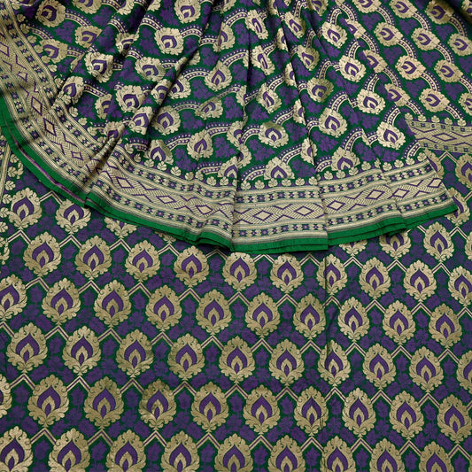 Indian Vintage Sarees Green 100% Pure Silk Hand Woven Sari Craft Fabric 5Yd Ethnic Floral Zari Dress making Crafting Upcycle