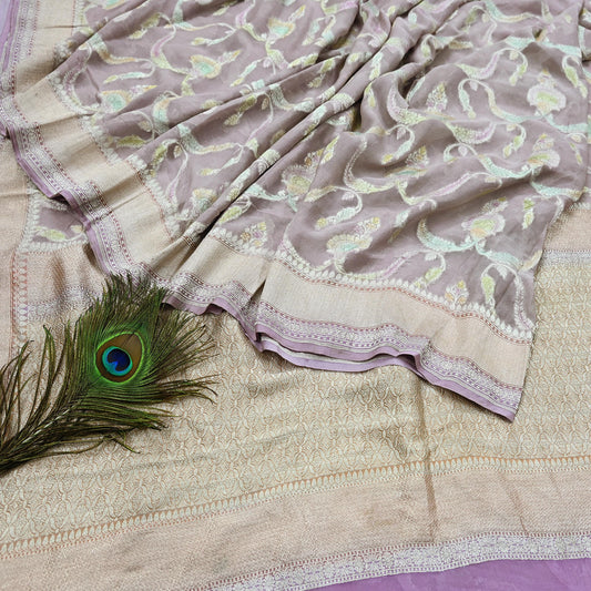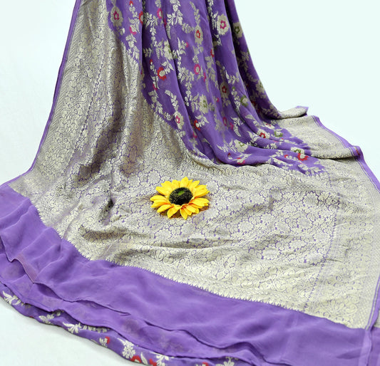 Vintage Heavy Purple Sarees Pure Georgette Silk Hand Woven Sari Craft Fabric 6Yd Sewing Soft Ethnic Zari Dress Making Wedding Sari