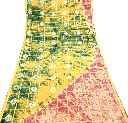 Indian Vintage Multi Saree Pure Cotton Bandhani Print Woven Sari Craft Soft Fabric 5Yd Sewing Sarong Wrap Boho Abstract Design