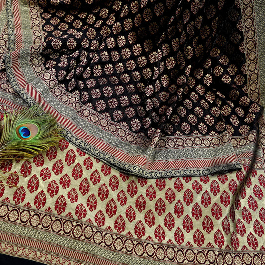 Indian Vintage Heavy Black Saree Pure Silk Hand Woven Sari Craft Fabric 5Yd Sewing Soft Ethnic Dress Making Wedding Sari Zari