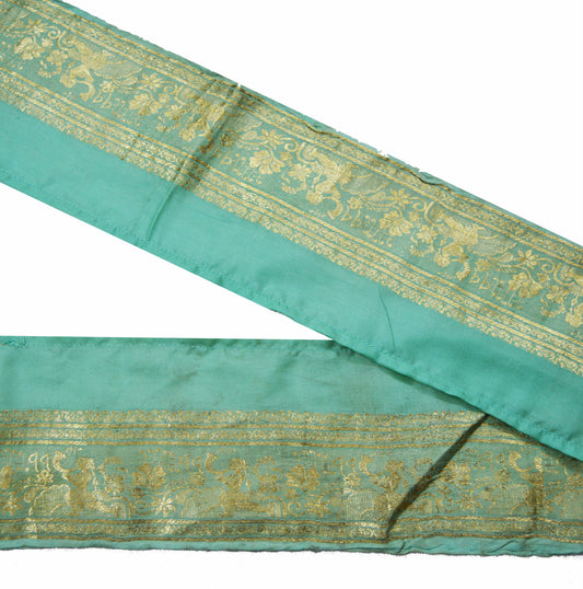 Indian Vintage Sari Border Greenn Woven Sari Trim Craft Sewing Recycled Sari Border Zari Pure Silk Home Decor Crafting Lady Design