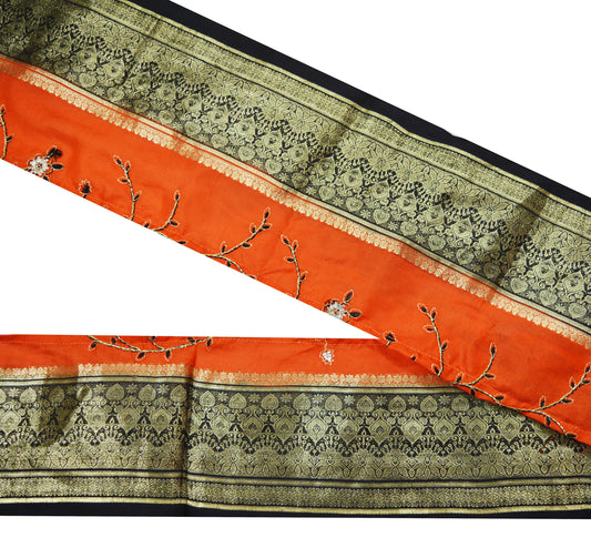 Indian Vintage Sari Border Black & Orange Woven Sari Trim Craft Sewing Recycled Sari Border Zari Pure Silk Home Decor Crafting Floral Design