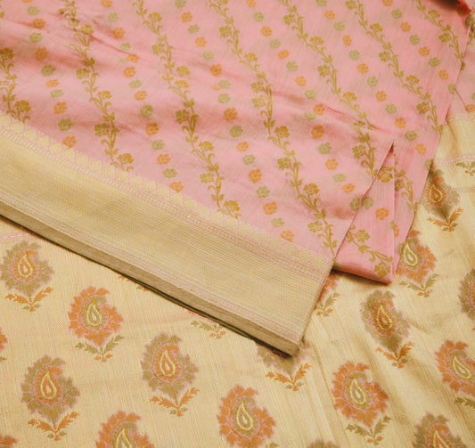 Indian Vintage Sari Pink Hand Woven Sari Cotton Saree Fabric 5Yard Floral Soft