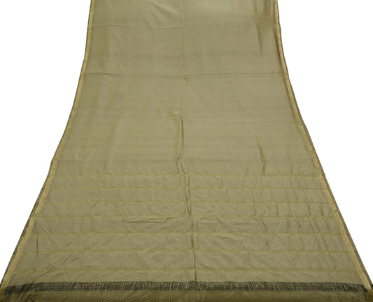 Indian Vintage Sarees Beige mysore Pure Silk Woven Sari 5Yd Craft Fabric Ethnic Soft Zari Border Bollywood sarees Crafting Quilting Upcycle