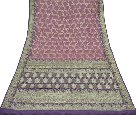 Indian Vintage Purple & Pink Sarees Pure Tussar Silk Hand Woven Sari Craft Fabric 5Yd Sewing Ethnic Dress making Upcycle Crafting Quilting