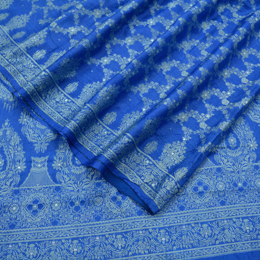 Indian Vintage Blue Sarees Pure Tussar Silk Hand Woven Sari Craft Fabric 5Yd Sewing Ethnic Dress making Upcycle Crafting Quilting