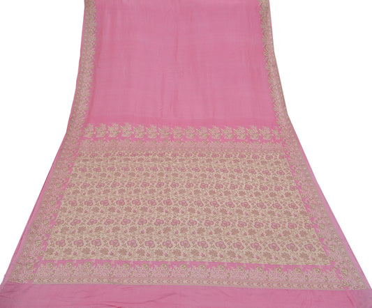 Indian Vintage Pink Sarees Pure Silk Hand Woven Sari Craft Fabric 5Yd Sewing Ethnic Dress making Upcycle Crafting Quilting Bollywood Sarees