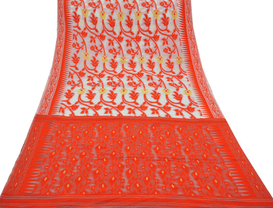 Indian Vintage Sarees Red & White Cotton Hand Woven Sari 5yd Ethnic Floral Craft Fabric Dress making Upcycle Crafting Quilting Zari