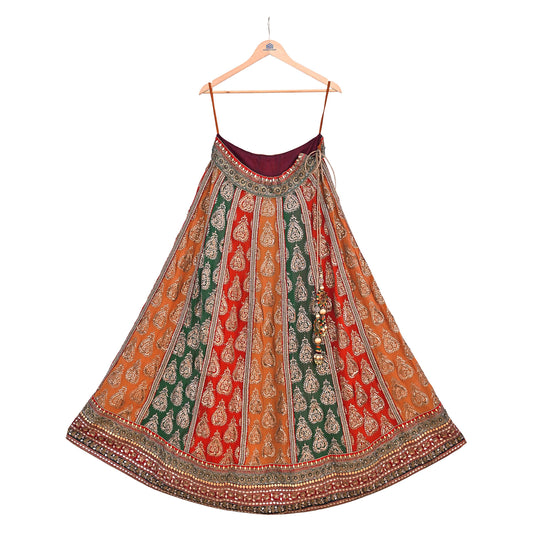 Maroon & orange Pure Silk Lehenga Skirt, Hand Embroidered Zardozi Bollywood Bridal Wear